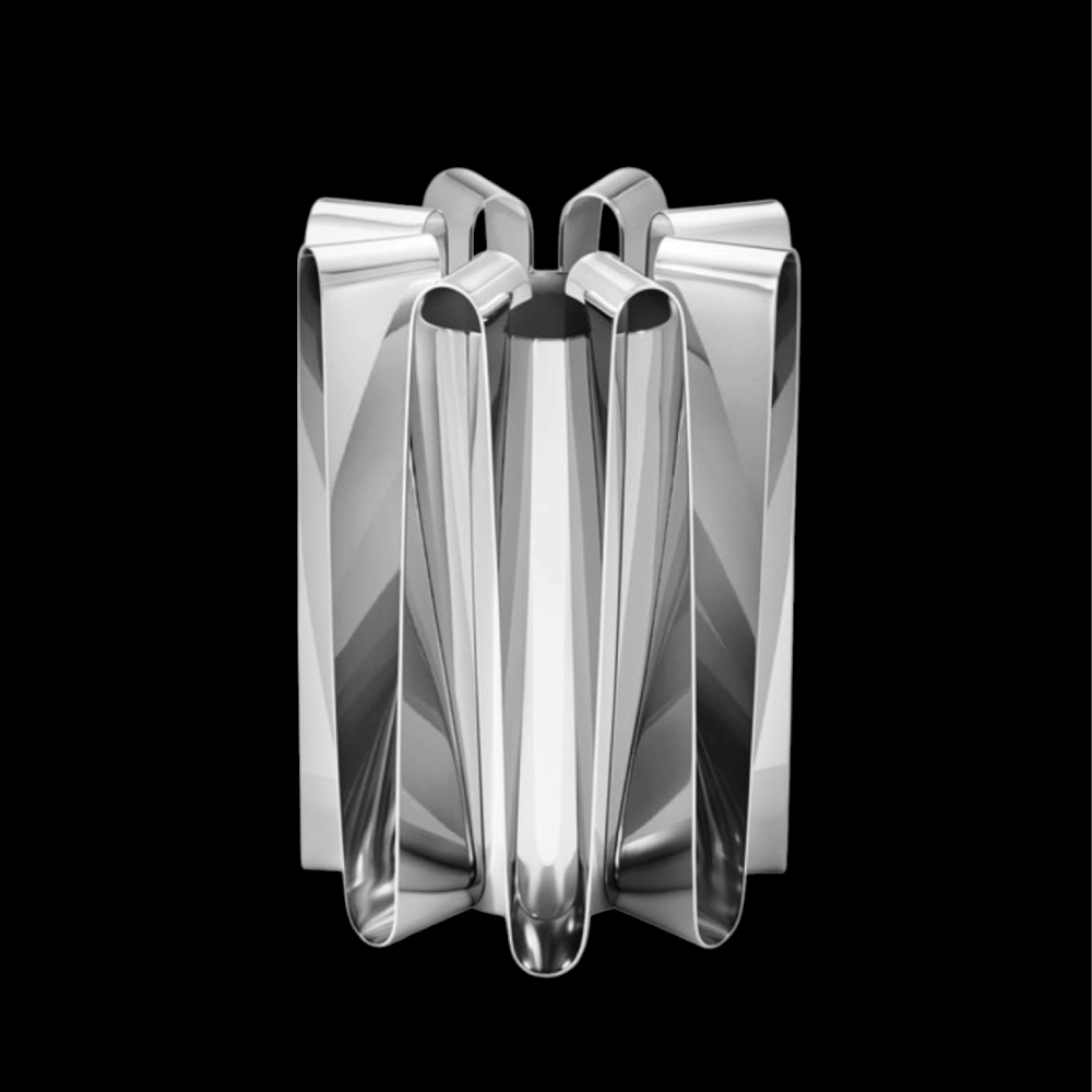 Inspired by the movement of the ocean, Kelly Wearstler captures fluidity in polished stainless steel with the striking FREQUENCY collection. The vase rests on undulating steel ribbons that reflect light and create a dynamic sense of motion, making it as sculptural as it is functional.