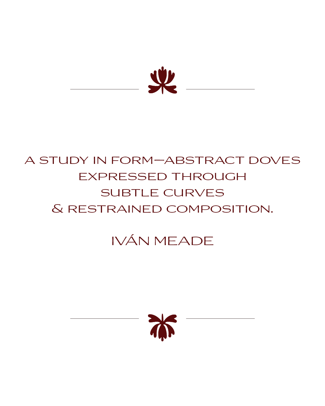 A study in form-abrastract doves expressed through subtle curves & restrained composition.