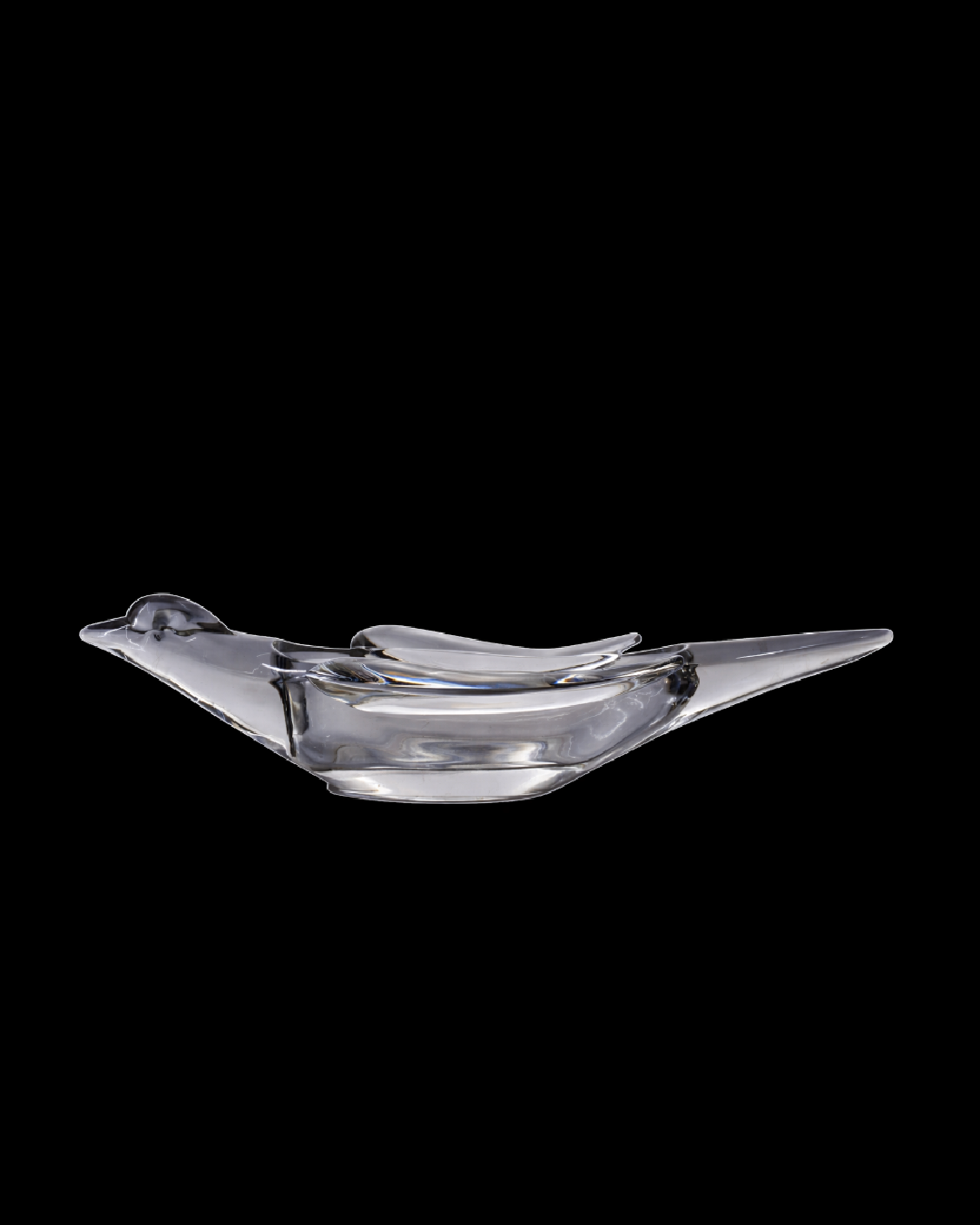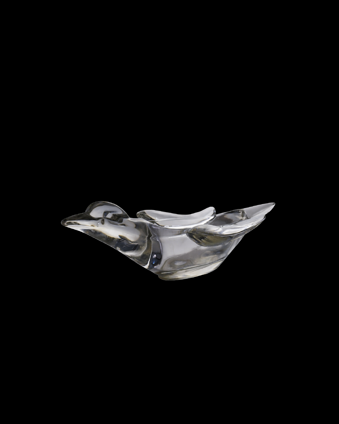 A beautiful Mid Century bird shape bowl piece made in luminous Vaseline glass. Produced in Vannes-Le-Châtel, Lorraine region of France. A region well known for its long tradition of fine glass making.